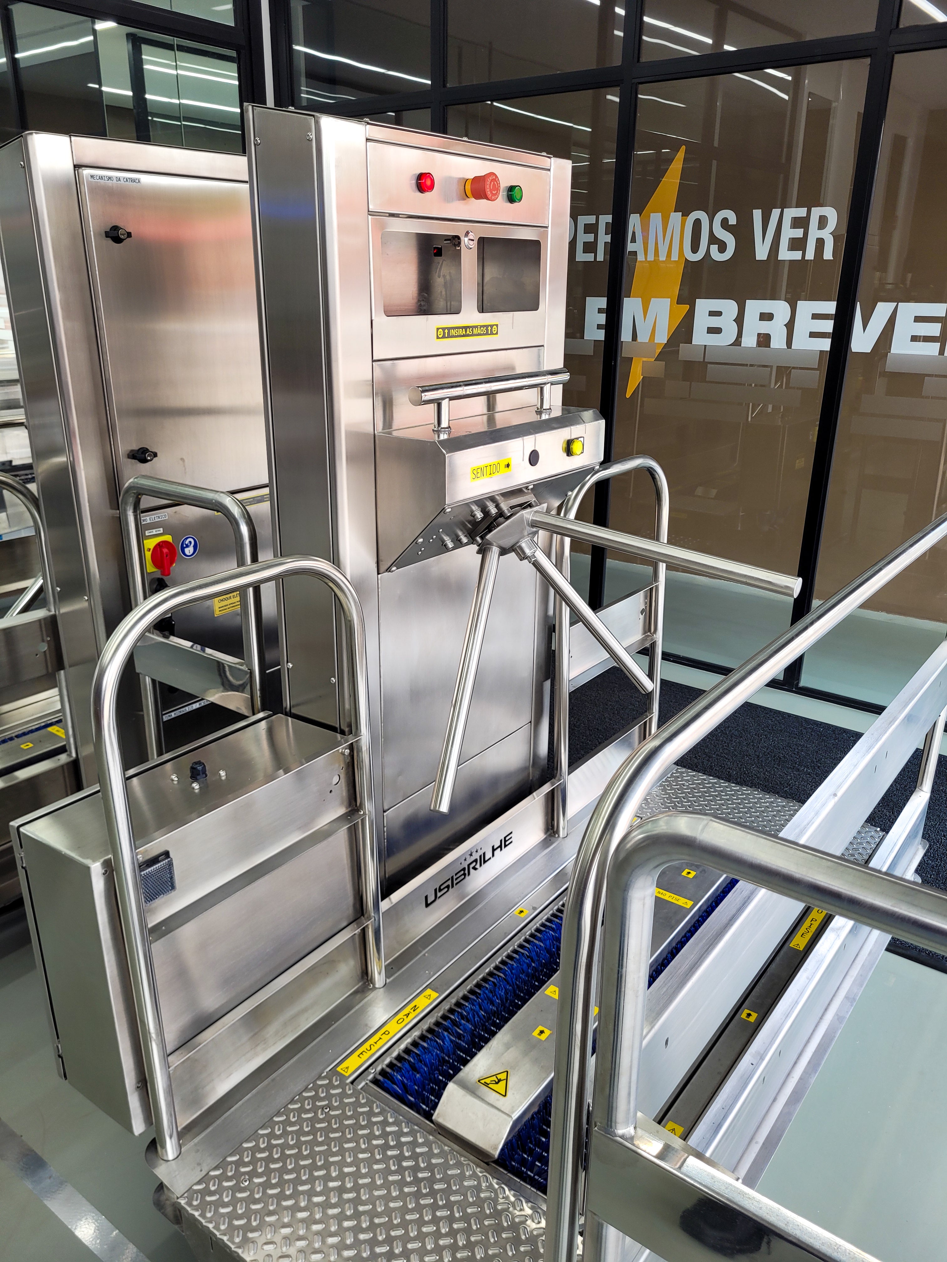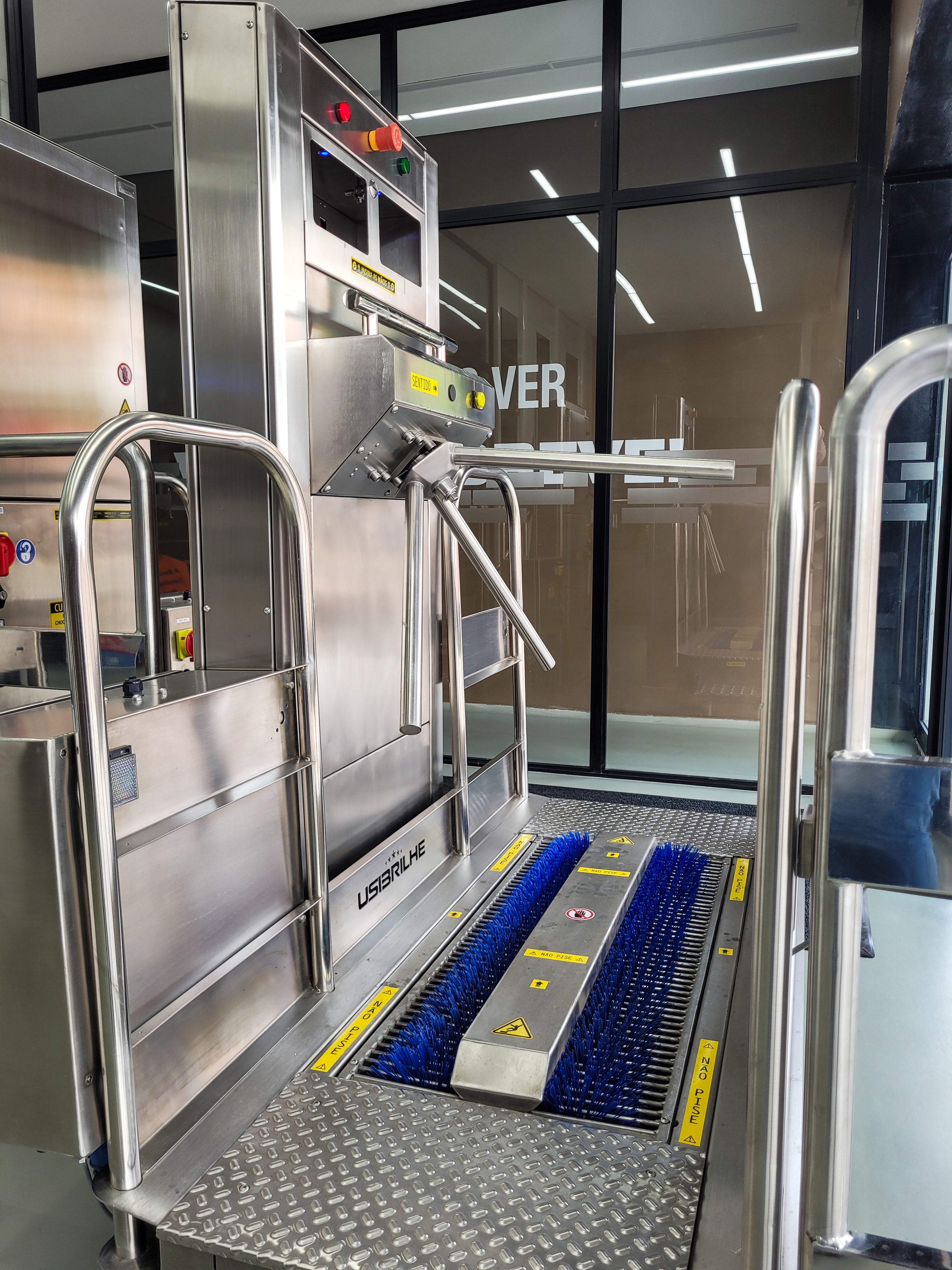 Recently, our team implemented a high-performance sanitary barrier in a food factory in the countryside of São Paulo, eliminating contamination risks when entering the production area. To achieve this, we adopted a system for cleaning shoe soles, access control with mandatory soap dosing, and sinks for hand sanitization, blocking microorganisms and residues that could compromise production.