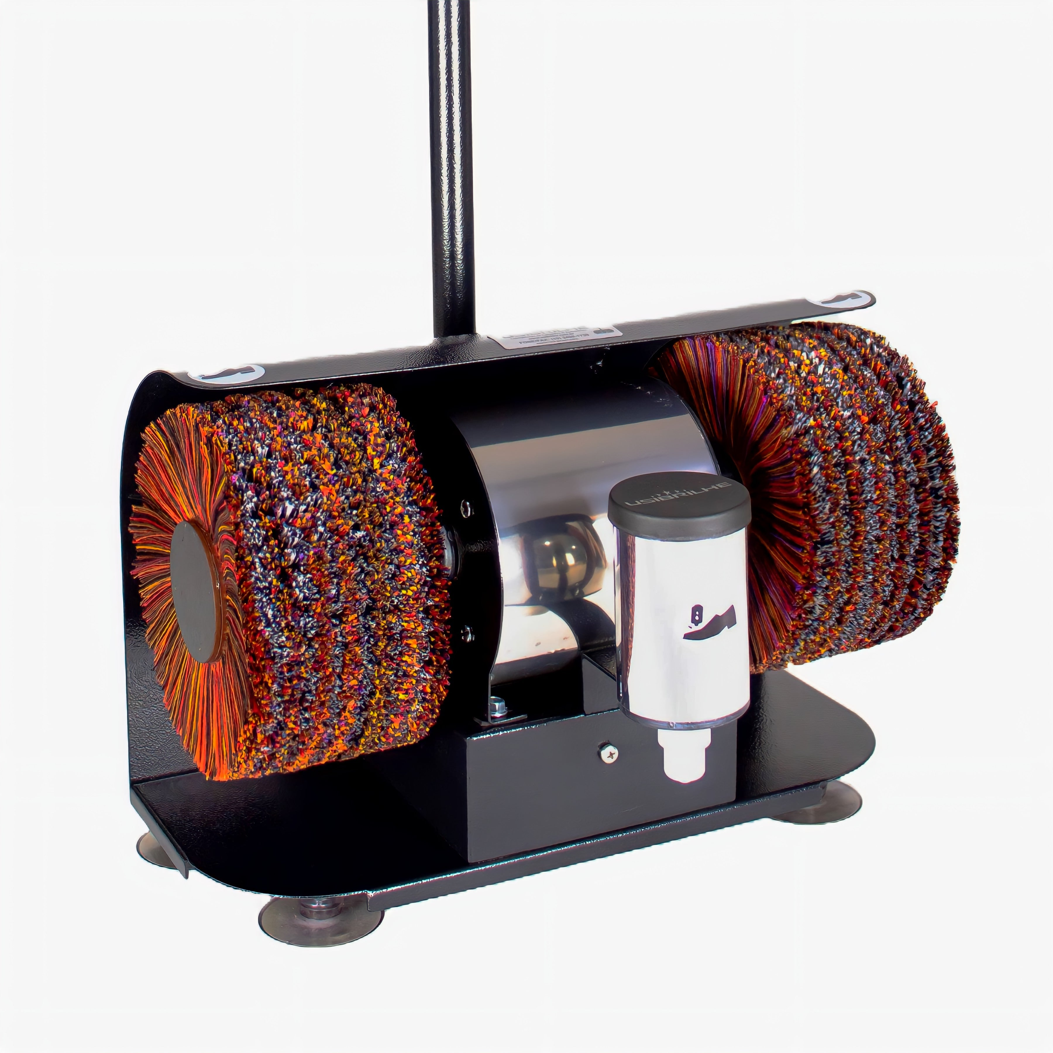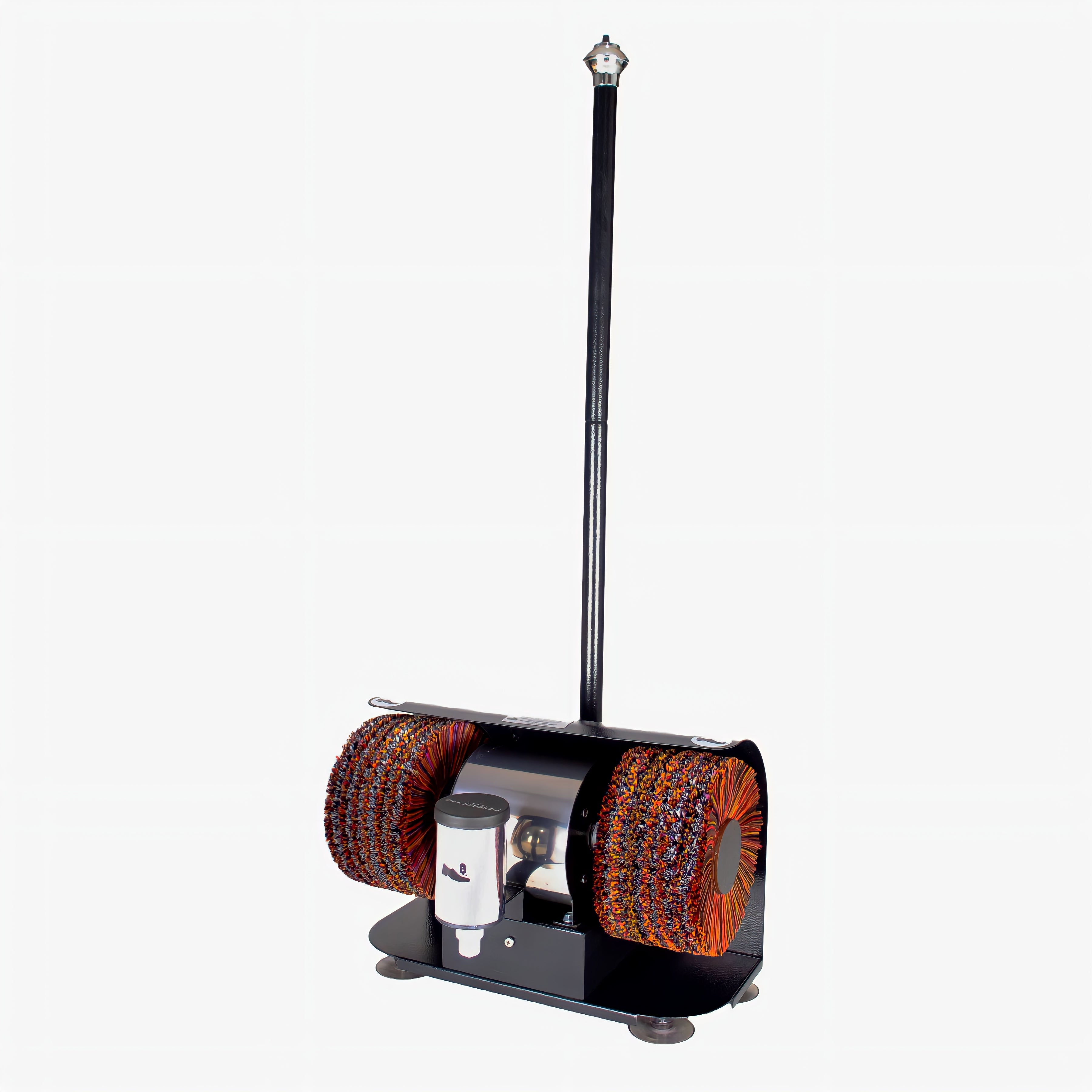 To operate it, just turn on the machine, apply the polish directly to the shoe using the roll-on dispenser, and then polish with the brushes until you achieve the desired shine. Activation is done through a button positioned on the machine’s rod.